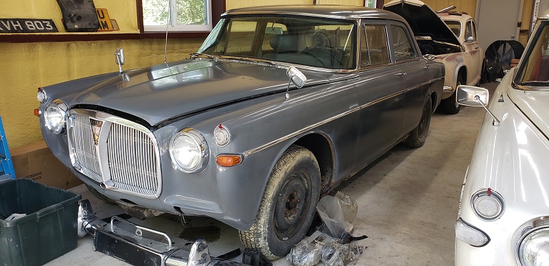 This 1966 3-litre P5 Mark III saloon is a LHD manual transmission North American export that was first imported to New York and made its way to Miami, Florida. It was owned by Francis Pelly who at the time worked for the British Consulate in Miami, Florida. The second owner, Bo knew Francis personally and had purchased the Mark III from him in 1970 and brought it to Danvers, Illinois where he lived. Bo used this car as his daily driver for over a decade until it was parked, and held onto it until it was sold to Gordon in Virginia in 2008. The severe rust damage on the body was the reason Gordon traded away the car in favor of a more turnkey P5 to enjoy. Bo says when he purchased the car in 1970, the two-tone Charcoal gray lower and Marine gray upper paint configuration remained exactly as seen in 2020. Factory records indicate this two-tone color combination is original, however, the Marine gray upper half was repainted and appears to be a non-factory custom repaint job done by the first owner because two-tone P5 Mark III cars usually only had the upper color only on the roof and not on the body like the earlier Mark I and Mark II models.