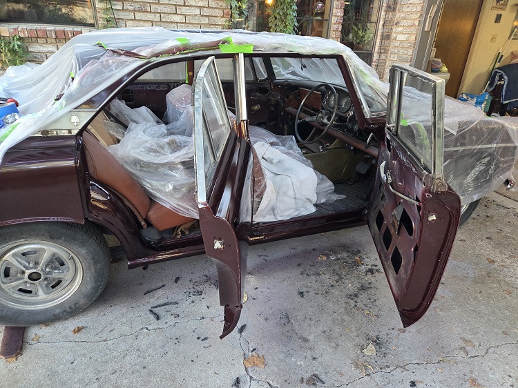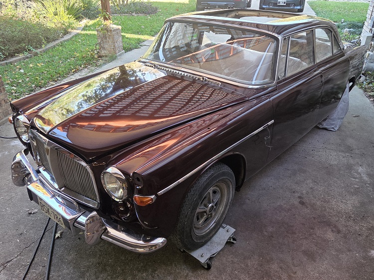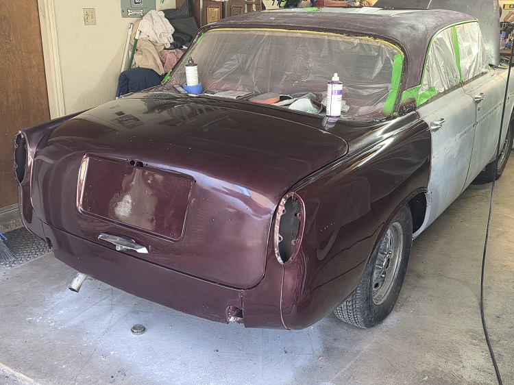 The overall result of the paint exceeded my expectations since the last time I sprayed a 2-stage paint myself was on the first 1953 Rover P4 and that taught me a lot of lessons. I was worried about seeing subtle waves and dents, but was very pleased to see nearly none of that on this Rover so I'll take it for a sub-$1000 driveway paint job. The body work and paint for me took about 3 weeks or ~100 hours of labor. This does not include the extensive hours that the previous owner most likely had put into rust repair and welding.
