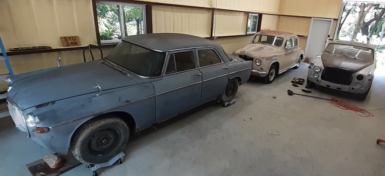 I was excited at the chance to see an original Rover - unlike the heavily modified Rover in poor condition that I had started with. After meeting Kent in person at his home in San Antonio, I learned that he had medical challenges and was unable to provide details, history, or valuation of the cars, hence the reason the family needed help with the sale. Then I went to his "Rover Ranch" where I saw at least a dozen Rovers, mostly P6, lined up outside on the property. Kent had a large 40x60 shop where he housed parts and current projects. Of all the cars Kent had on the property, the three cars that caught my attention were an original ivory 1953 P4, a rusty two-tone charcoal/marine gray 1966 P5 Mark III, and a Bordeaux red 1968 P5B all in various project stages of incomplete repair and restoration. The P4 and P5B were housed in his shop, and the P5 Mark III was left outside in the elements because it was considered a parts car.